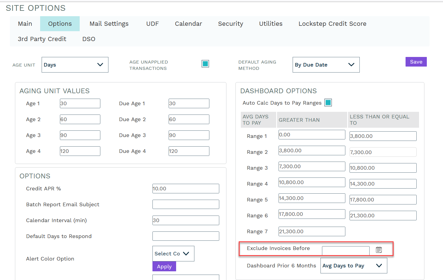 Average days to pay and weighted average days to pay include invoices based on date set on site options, 'Exclude Invoices Before'.