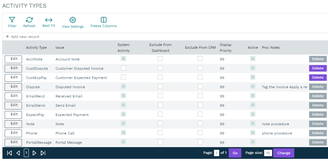 Activity types can be setup or modified by going to Admin Master File Activity Types.
