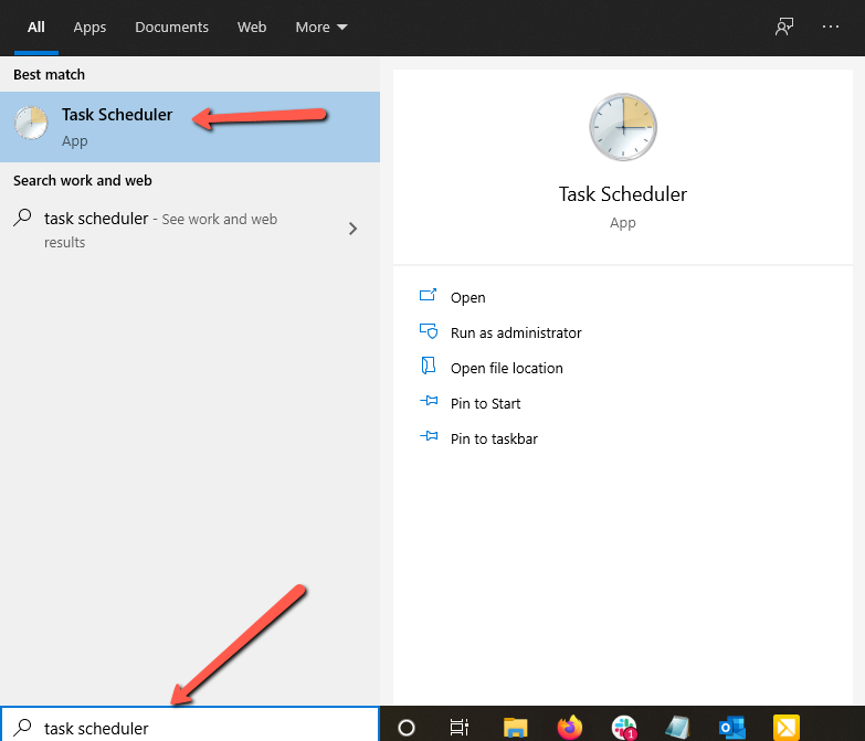 Open the "Task Scheduler" application using an Admin level Windows user.
