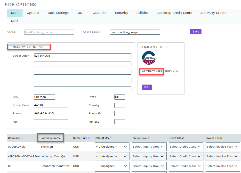 Company Name: Display Company ID, if field not populated, default back to Site Options, ERP Company Name