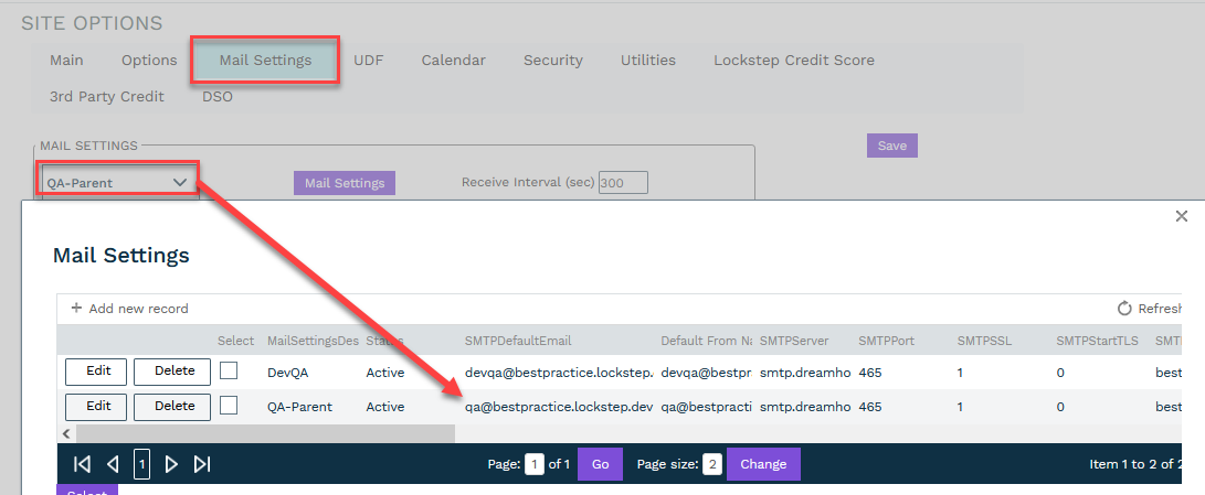 Mail Settings tab - default email address