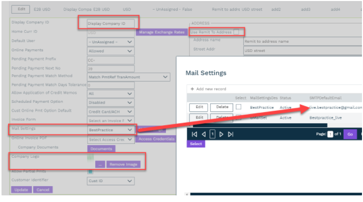 Email address: Company mail settings, if not set, default back to site options