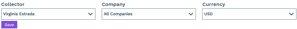 Using the filters at the top of the page, you will be able to limit this data by each company. By default, it will show data for all companies. The data can also be limited by each currency.