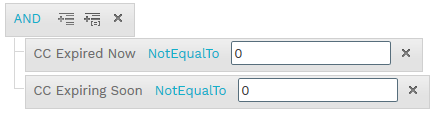 When editing the filter for the customer level activity, add either the "CC Expired Now" field or the "CC Expiring Soon" field, then set it not equal to 0. (See below)