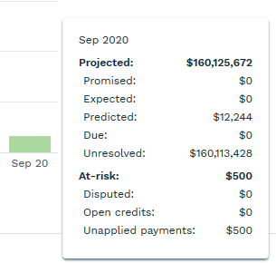 By hovering over the current or subsequent two months, you will see the amount that is projected for that month as well as the actual dollar amount collected so far.