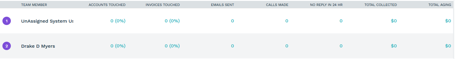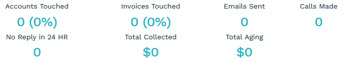 As of July 2020, the dashboard now allows you to track how many accounts/activities your collector's are working. You can track how many emails they are sending, how many calls they are making, and how much they have collected. You can also control what date ranges are included in the summary.
