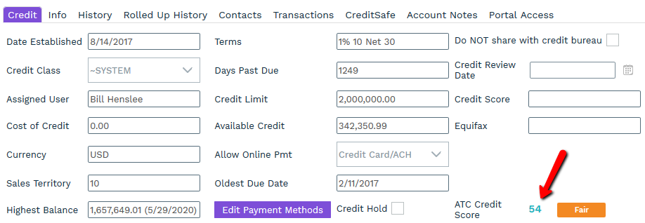 The customer's final score can be found on the "All Accounts" page under the "ATC Credit Score" field and can also be found in the credit tab of the customer drop-down menu.