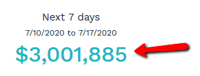 Click on the blue currency displaying under each field to open a new tab on the "Projected Cash Receipt" page. This will automatically filter the data to match the parameter from the dashboard.