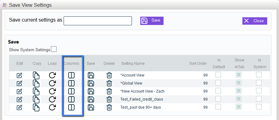 From there, the "View Settings" window will appear. Select a column from the views available.