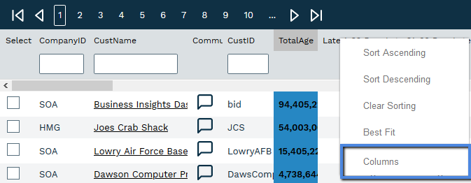Users can also edit the columns by right clicking on the column name.