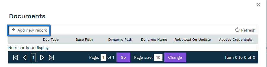 Select the "Add new record" button located at the top of the documents window