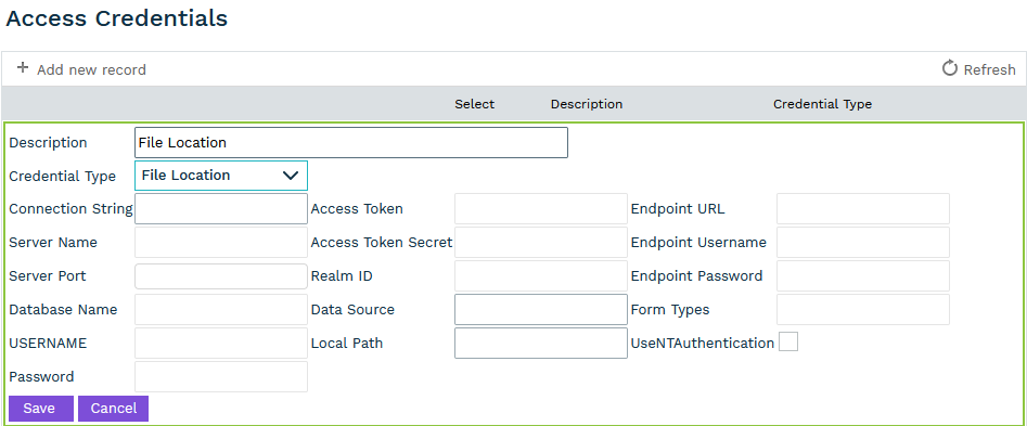On the "Access Credentials" drop-down, select the "File Location" option