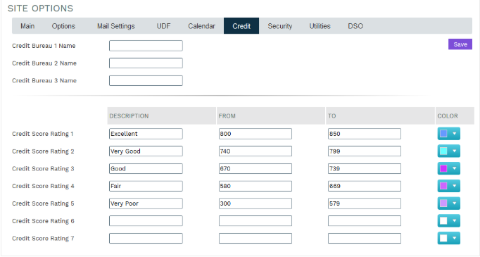 Admin users can setup a color scheme based on Credit Score ratings by account.