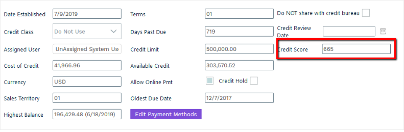 Navigate to the customer account again and the account will be color coded based on the credit range it falls under.