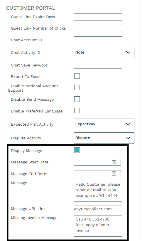 Towards the bottom left of the page are the "Customer Portal" settings.