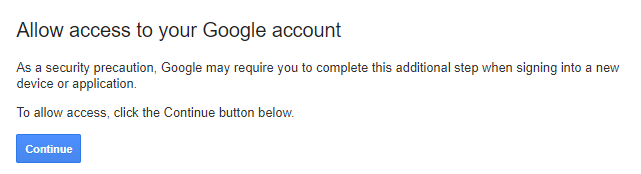 Additional step when signing into a new device or application - log into Gmail account, click on link below to allow access: