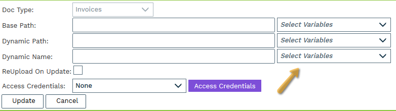 Access Credentials: Used to define or setup your access credentials for document support using the following: