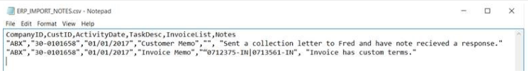 Import Customer Notes can be used to import historical notes into SARA as closed activity notes or account notes to provide information from another system or to assist in the transition from another application.