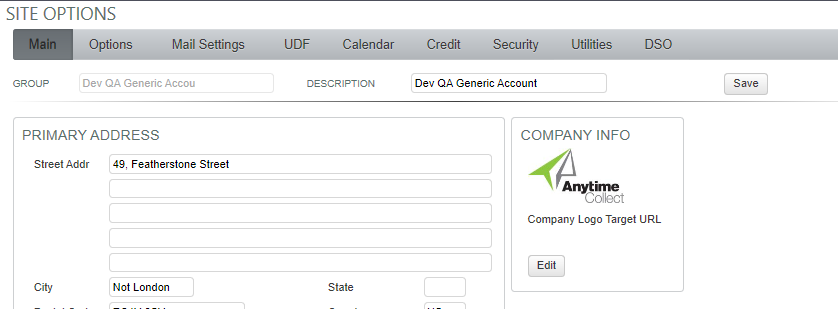 Admin Settings & Utilities Site Options - Main tab: