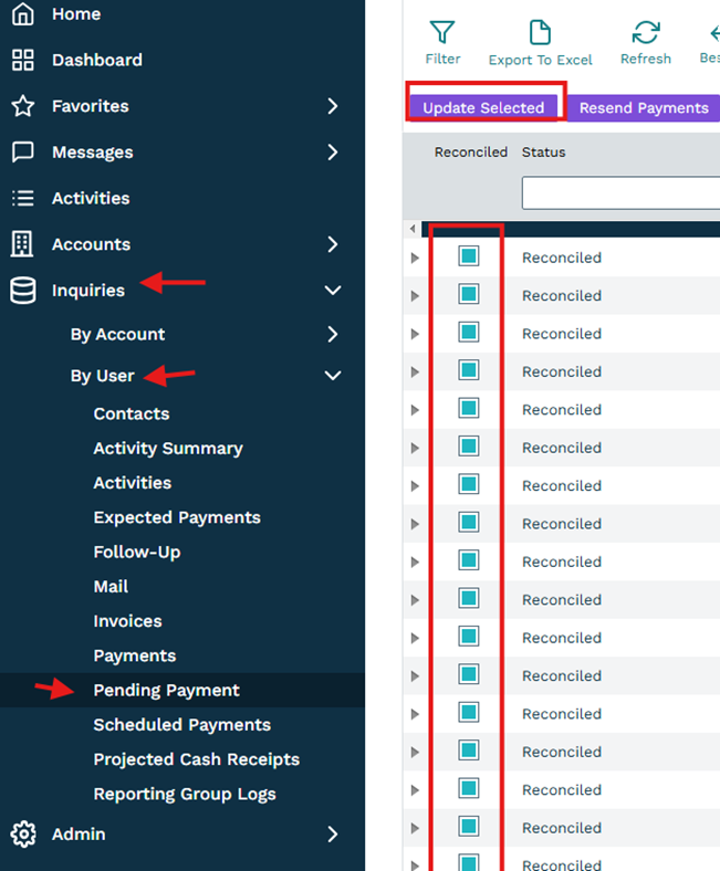 - Click Pending Payment.